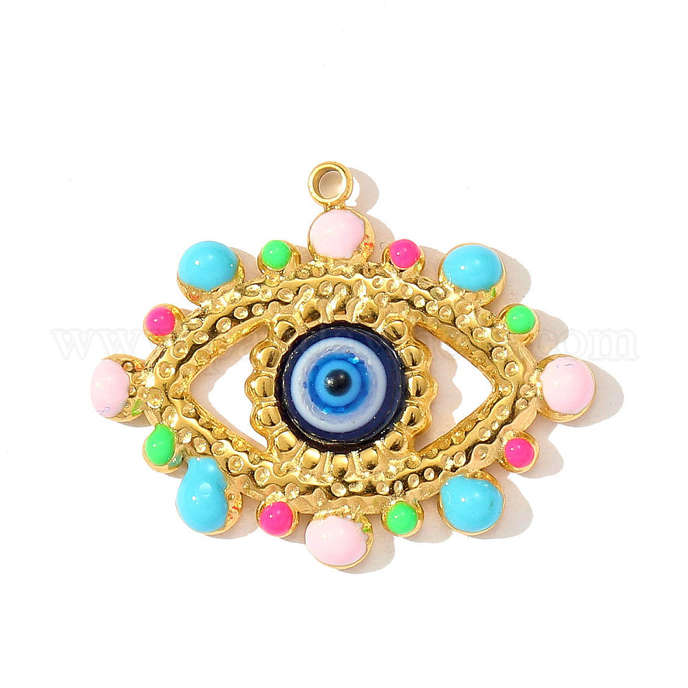 • Разноцветный 304 нержавеющей стальной эмали подвески, Злые чары глаз, ионное покрытие (ip), реальный 18 k позолоченный, красочный, 26x21 мм