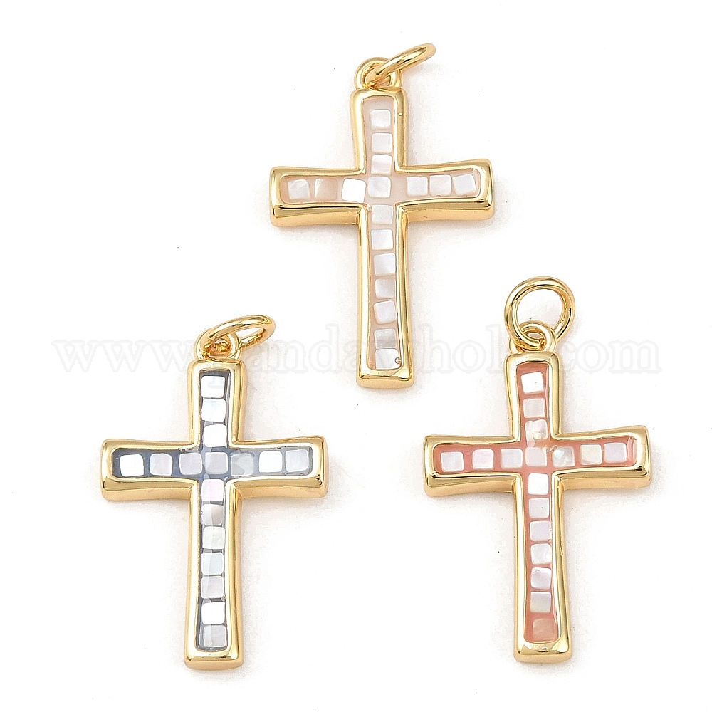 Латунь эмаль подвески, крестик, с ракушкой и прыжковым кольцом, без свинца и без кадмия, долговечный, стойки покрытие, реальный 18 k позолоченный (038DS9)