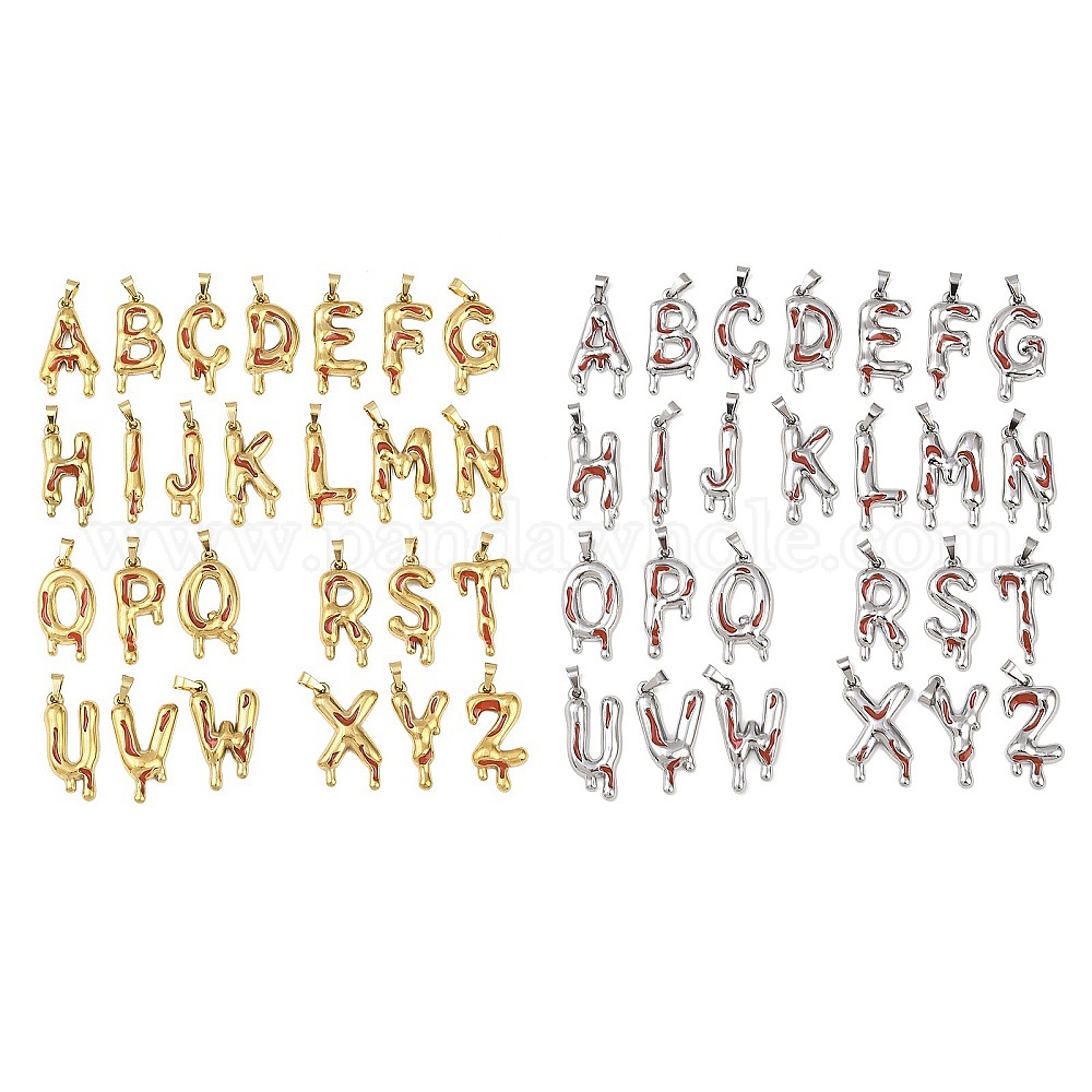 • Золотой 304 нержавеющей стальной эмали подвески, 26 буквы, золотые, 26.5~27.5x5.5~17x2.8~3.3 мм, отверстие : 4.5x3 мм