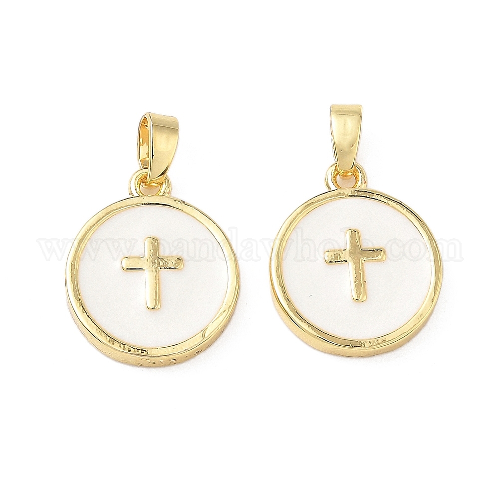• Золотой Латунь эмаль подвески, плоские круглые с поперечными прелести, без свинца и без кадмия, долговечный, стойки покрытие, золотые, 16.5x14x2.5 мм, отверстие : 4x2.5 мм