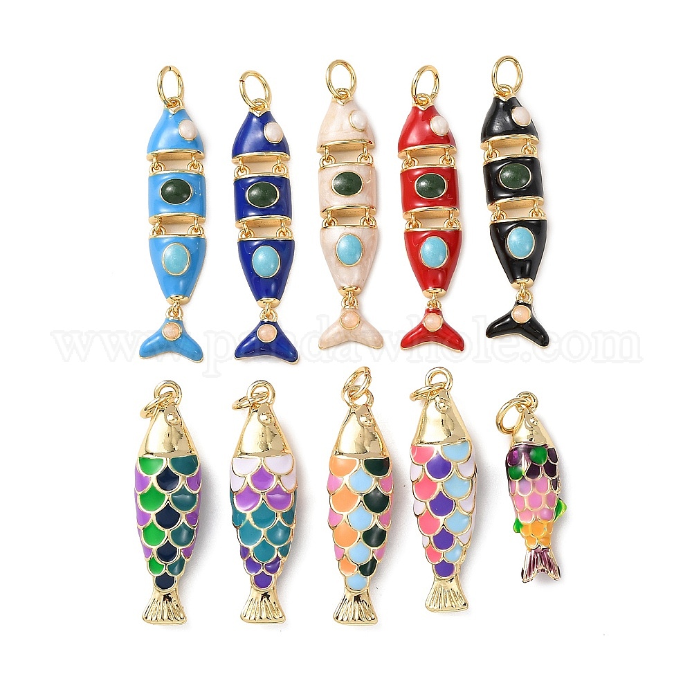 Латунь эмаль подвески, рыбы прелести, без кадмия и без свинца, стойки покрытие, долговечный, с целью перехода в кольце, реальный 18 k позолоченный