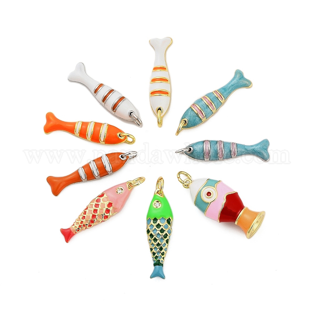 Латунь эмаль подвески, рыба, долговечный, стойки покрытие, без свинца и без кадмия, ионное покрытие (ip), настоящий 18k позолоченный/платиновый, с целью перехода в кольце