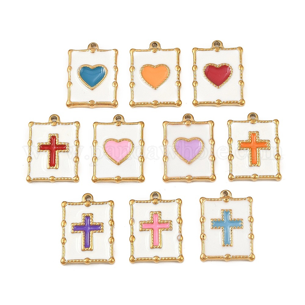 304 подвески из нержавеющей стали, прямоугольник амулеты, с эмалью, золотые