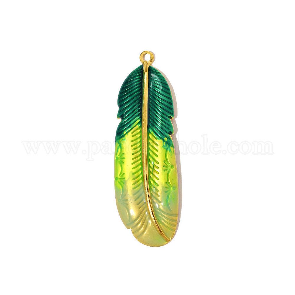 304 эмаль нержавеющей стали большие кулоны, прелести из перьев, реальный 18 k позолоченный, ионное покрытие (ip)