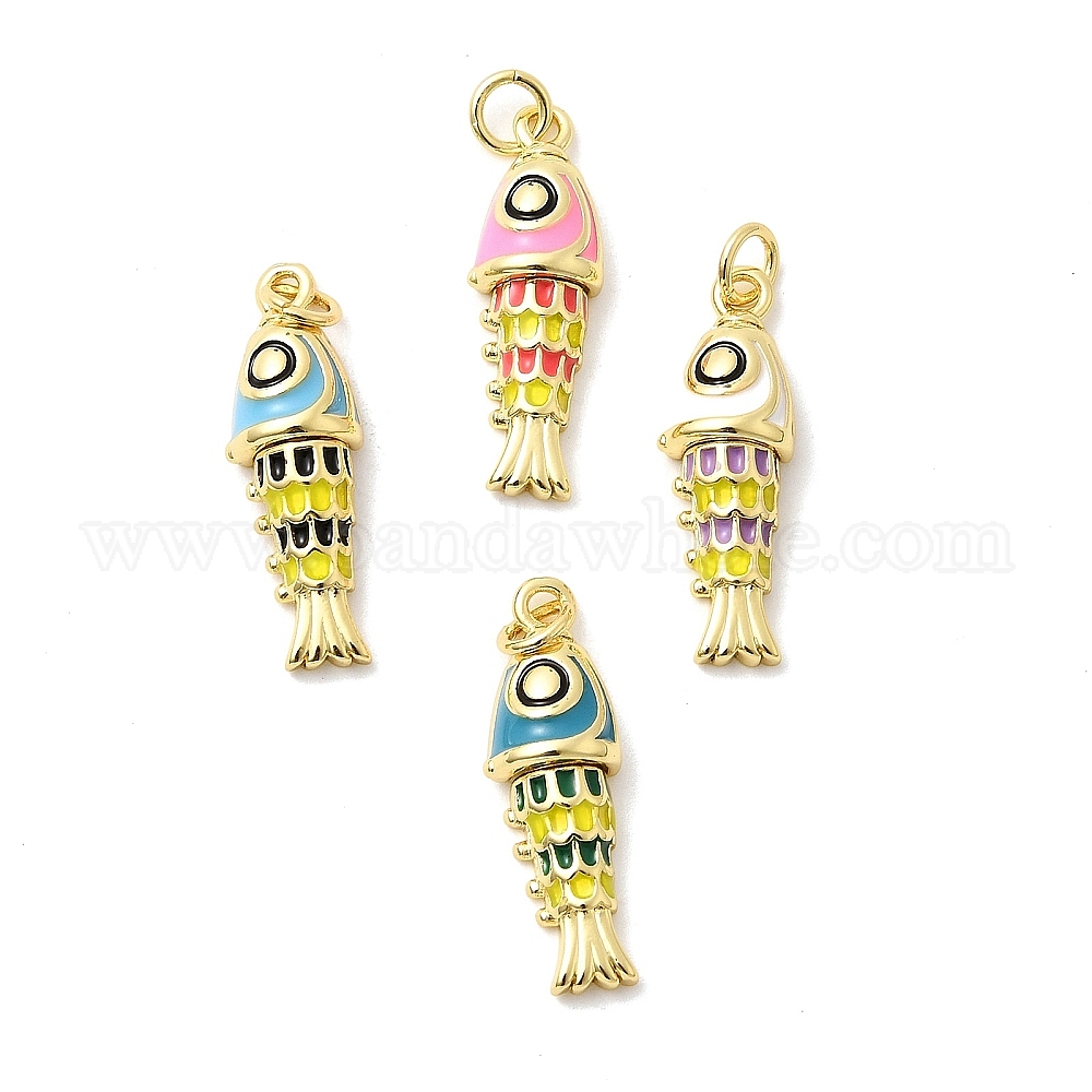 Латунь эмаль подвески, рыба, с целью перехода в кольце, долговечный, стойки покрытие, без свинца и без кадмия, реальный 18 k позолоченный