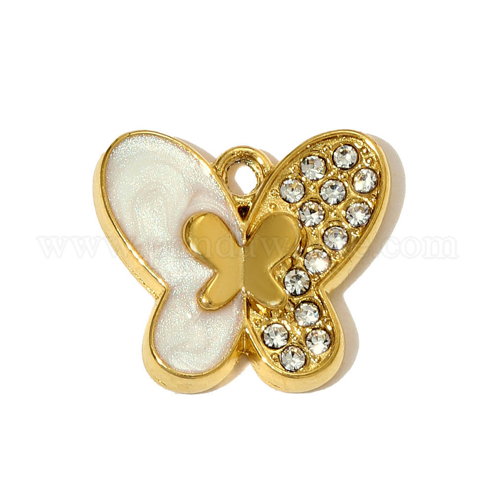 304 нержавеющей стальной эмали подвески, бабочки прелести, с блестящей пудрой и стразами, ионное покрытие (ip), реальный 18 k позолоченный