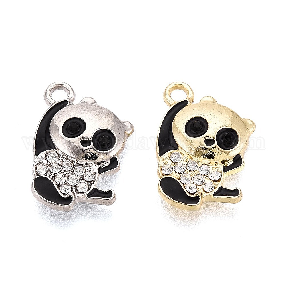 Подвески из сплава, эмали и хрустальных страз, панда с подвесками-черепами