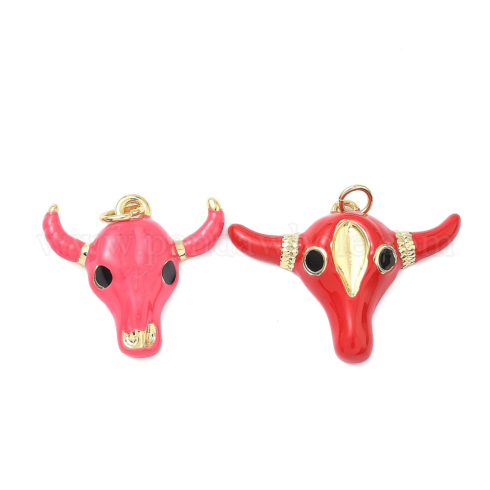 Латунные подвески, прелести головы быка, с эмалью, без кадмия и без свинца, стойки покрытие, долговечный, реальный 18 k позолоченный, с целью перехода в кольце