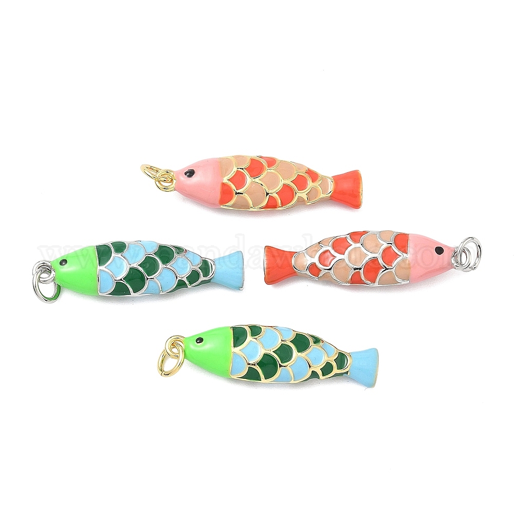 Латунные подвески, рыбы прелести, с эмалью, без кадмия и без свинца, стойки покрытие, долговечный, с целью перехода в кольце, настоящий 18k позолоченный/платиновый