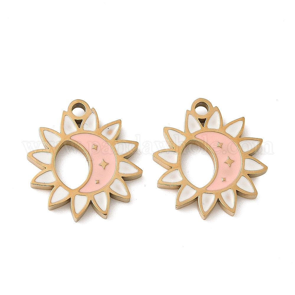 304 подвески из нержавеющей стали, талисманы солнца и луны, с эмалью, ионное покрытие (ip)