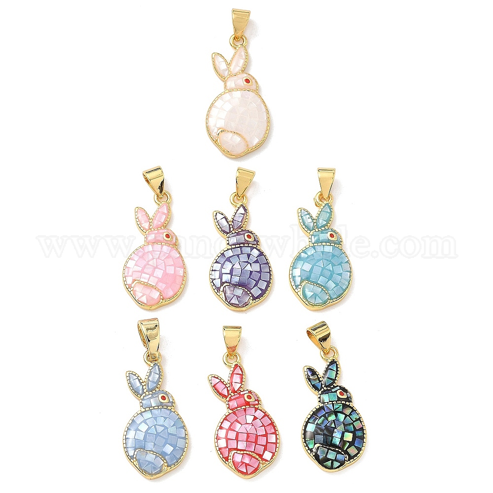 Латунь эмаль подвески, кролика прелести, с естественной оболочке, долговечный, стойки покрытие, реальный 18 k позолоченный