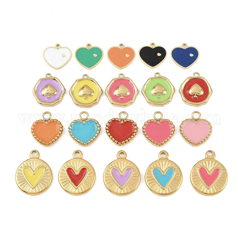 304 подвески из нержавеющей стали, сердце прелести, с эмалью, золотые