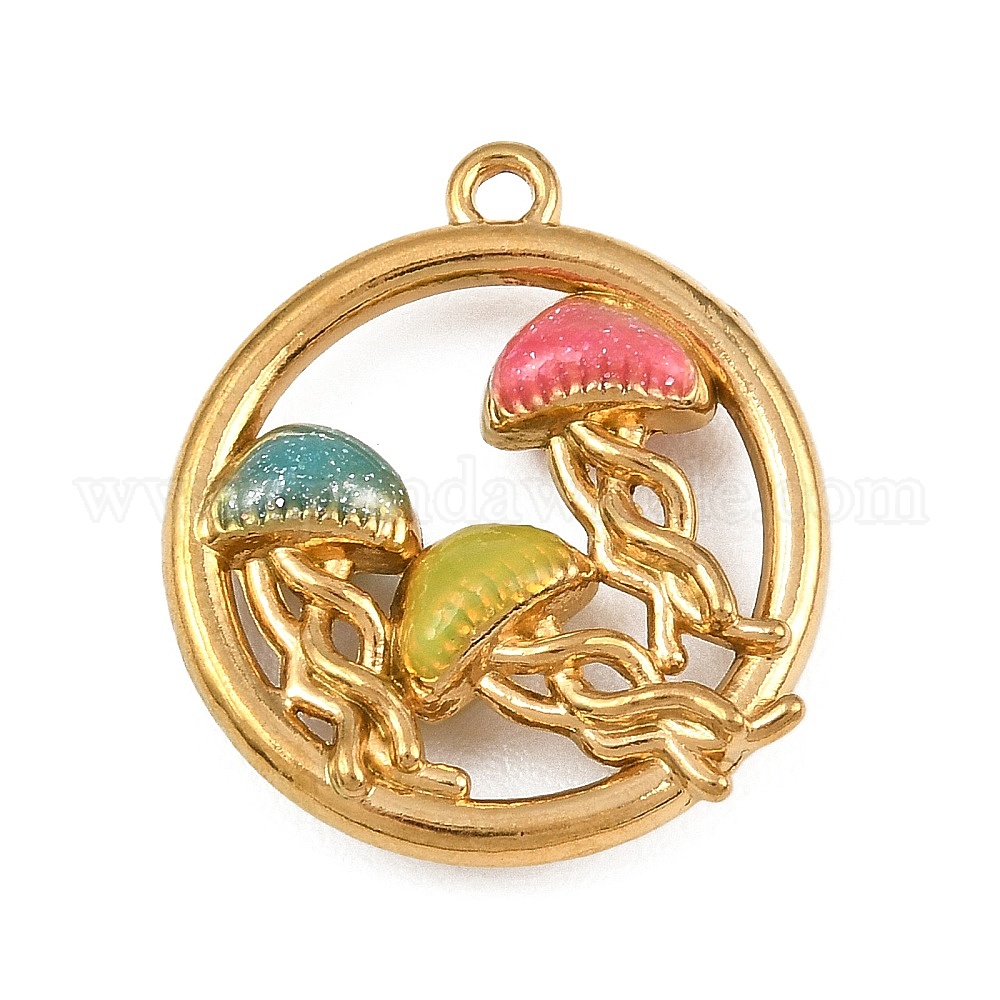 304 нержавеющая сталь с эмалевыми подвесками, плоский круг с подвесками в виде медуз
