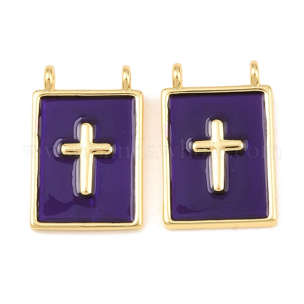 • Настоящее золото 18K Латунь эмаль подвески, прямоугольник с поперечными прелести, реальный 18 k позолоченный, 17.5x11.5x1.8 мм, отверстие : 1.2 мм