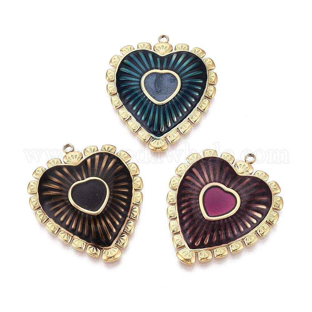 304 подвески из нержавеющей стали и эмали, сердце прелести, ионное покрытие (ip), реальный 18 k позолоченный