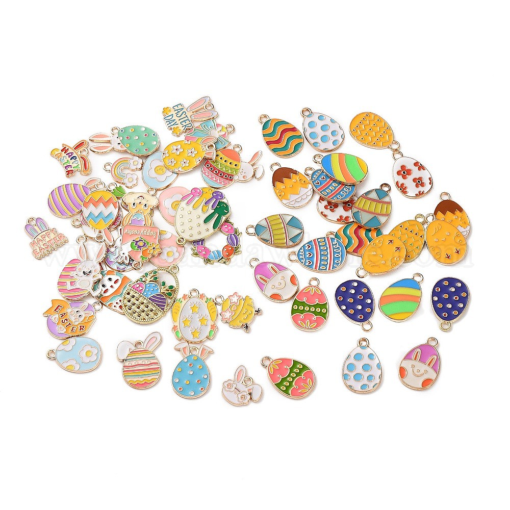 • (52) Непрозрачная лаванда Подвески из эмали и сплава, пасхальные прелести, золотые, разноцветные, 22x14x1.5 мм, отверстие : 2~2.5 мм, 22 шт / пакет