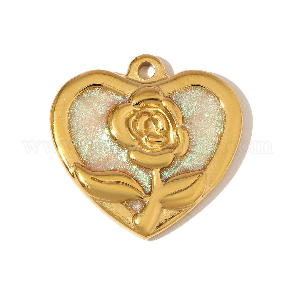 304 нержавеющей стальной эмали подвески, сердце с цветочными подвесками, ионное покрытие (ip)