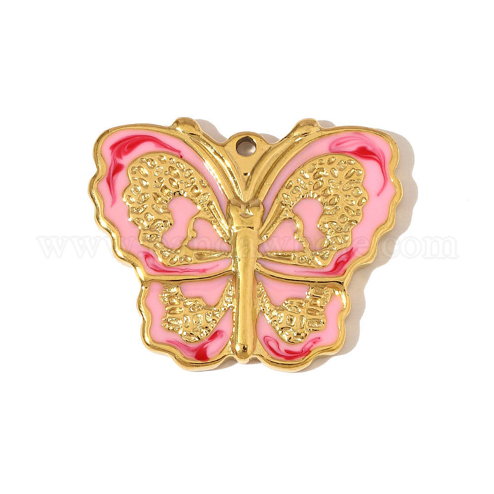 304 нержавеющей стальной эмали подвески, бабочки прелести, ионное покрытие (ip), реальный 18 k позолоченный