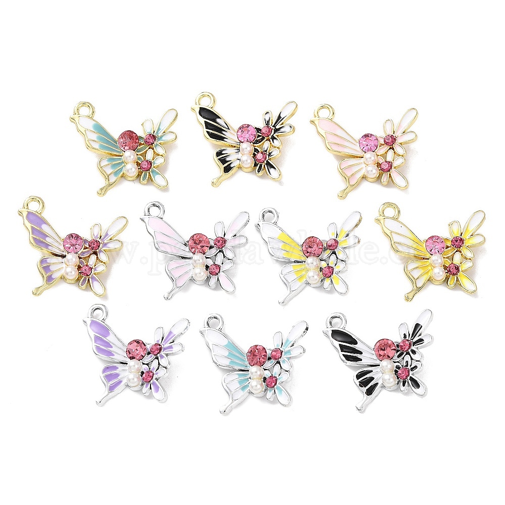 Подвески из эмали и сплава, бабочки прелести, со стразами, ABS имитация жемчуга, стойки покрытие, золотые / платиновые