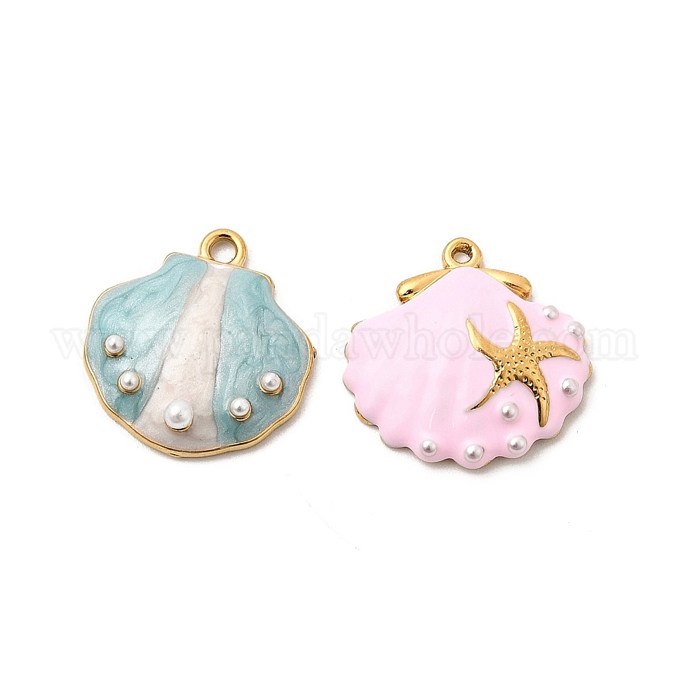 304 нержавеющей стальной эмали подвески, подвески в форме ракушек, с abs имитационными жемчужными бусинами , ионное покрытие (ip), реальный 18 k позолоченный