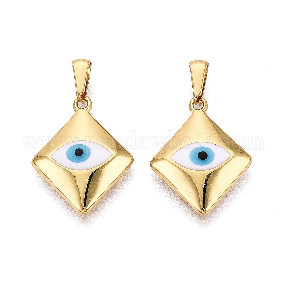 • Золотой 304 подвески из нержавеющей стали и эмали, ромб и амулеты от сглаза, Небесно-голубой, золотые, 26x20x5 мм, отверстие : 8x3 мм