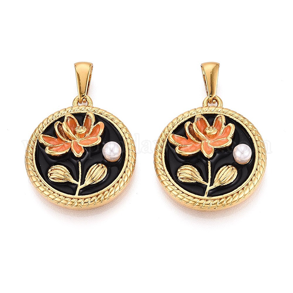 304 подвески из нержавеющей стали, эмали и искусственного жемчуга из АБС-пластика, плоские круглые и цветочные подвески, золотые