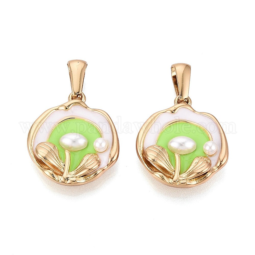 304 подвески из нержавеющей стали, эмали и искусственного жемчуга из АБС-пластика, самородки с цветочными подвесками, золотые