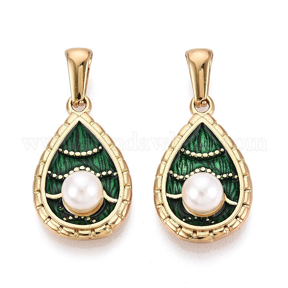 304 подвески из нержавеющей стали, эмали и искусственного жемчуга из АБС-пластика, слезинки, золотые