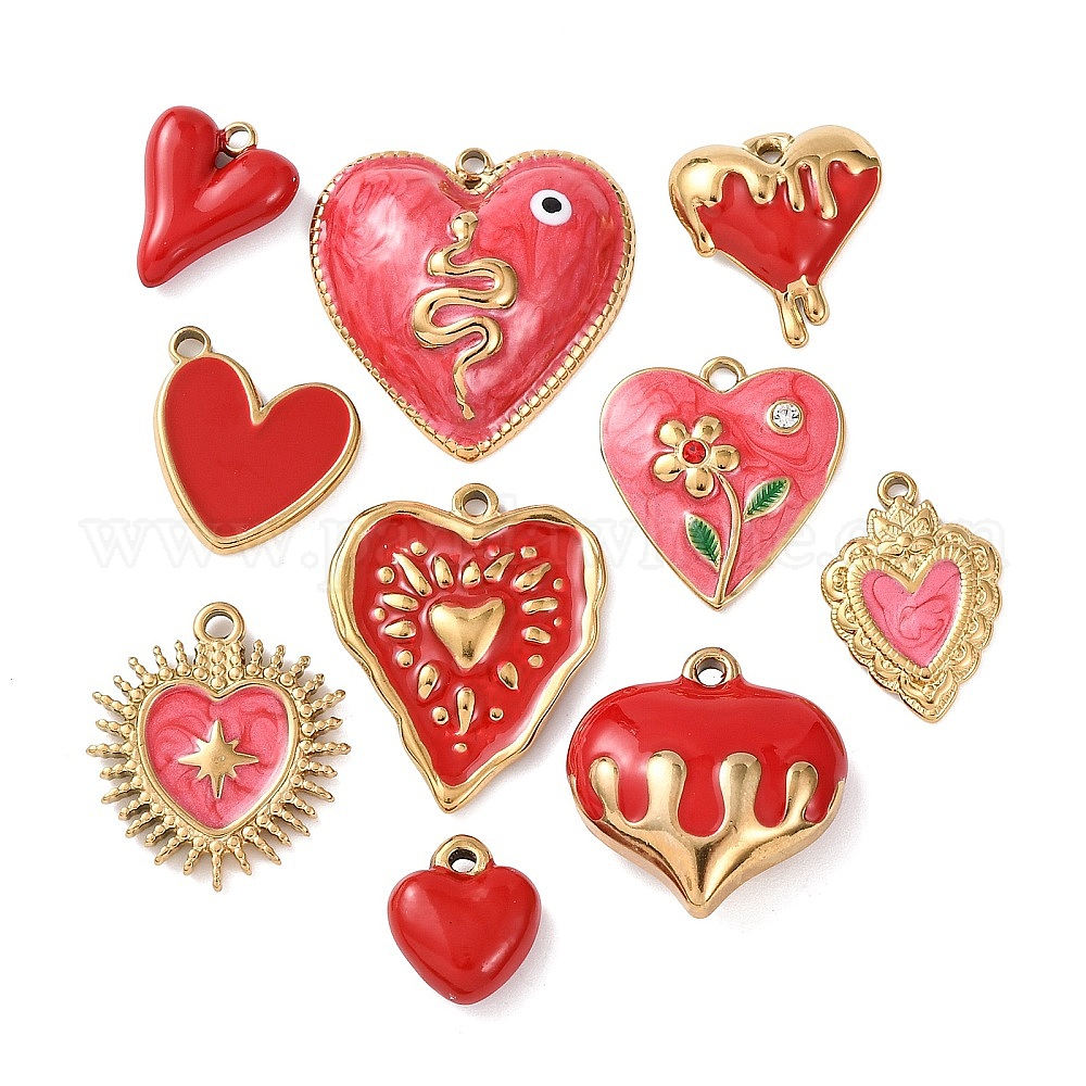 5шт. 304 эмалированные подвески из нержавеющей стали, ионное покрытие (ip), сердце прелести