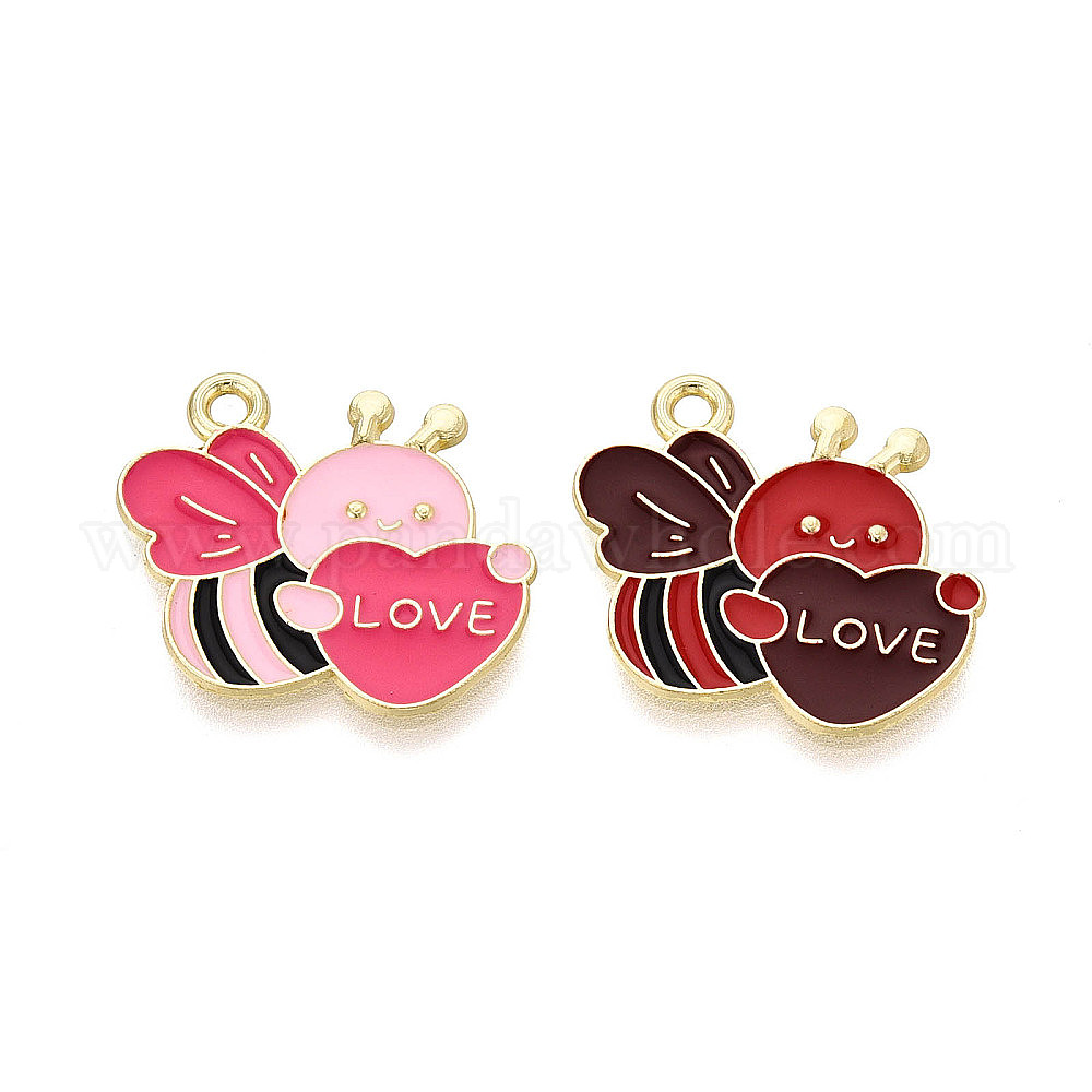 Подвески из сплава с эмалью ко дню святого валентина, пчелы с сердечками, золотые