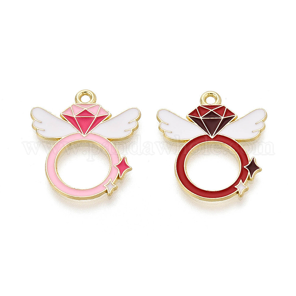 Подвески из сплава с эмалью ко дню святого валентина, подвески-кольца и крылья, золотые
