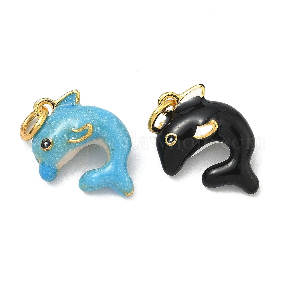 • Черный Подвески из сплава с эмалью в виде морских животных, прелести дельфинов, золотые, чёрные, 20.5x14.5x8 мм, Перейти кольцо: 6.5x1.5 мм, 3.5 мм внутренним диаметром