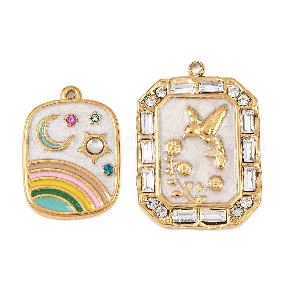 304 подвески из нержавеющей стали, прямоугольник амулеты, с эмалью и горный хрусталь