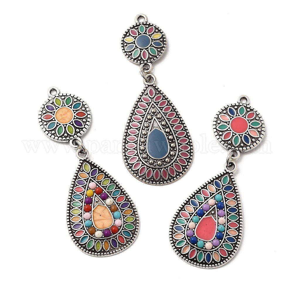 Тибетский сплав стиля большие кулоны, круглый с подвесками в форме капли, Богемные пластиковые и эмалевые подвески