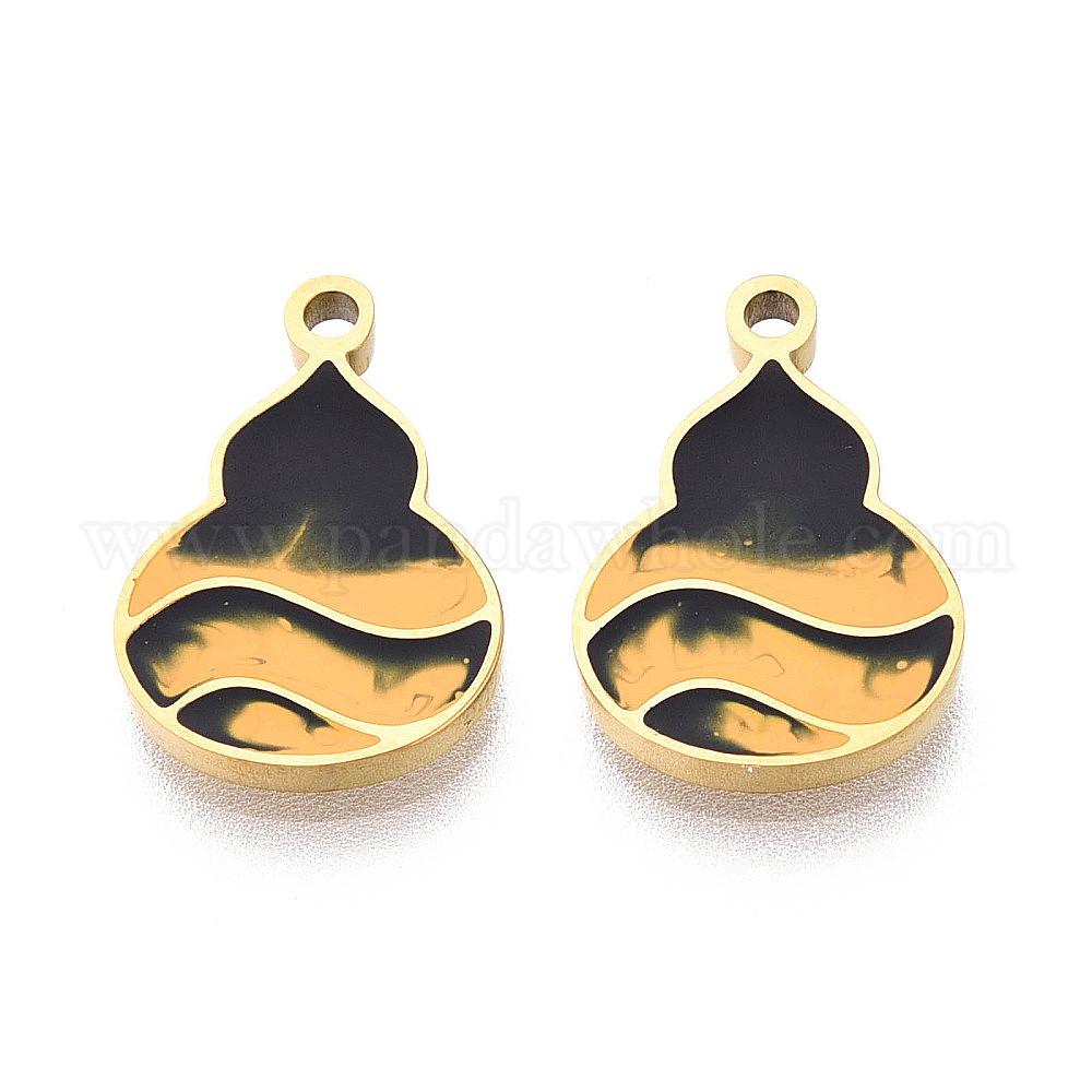 304 Подвески в форме тыквы из нержавеющей стали и эмали, ионное покрытие (ip), золотые