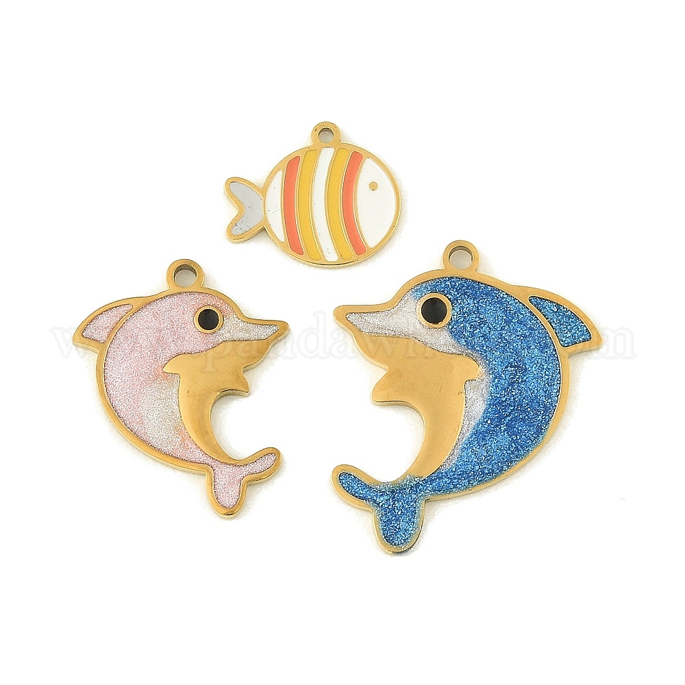 • Fish 304 нержавеющей стальной эмали подвески, ионное покрытие (ip), с блеском порошок, реальный 18 k позолоченный, рыба, 18.5x15x1.5 мм, отверстие : 1.5 мм