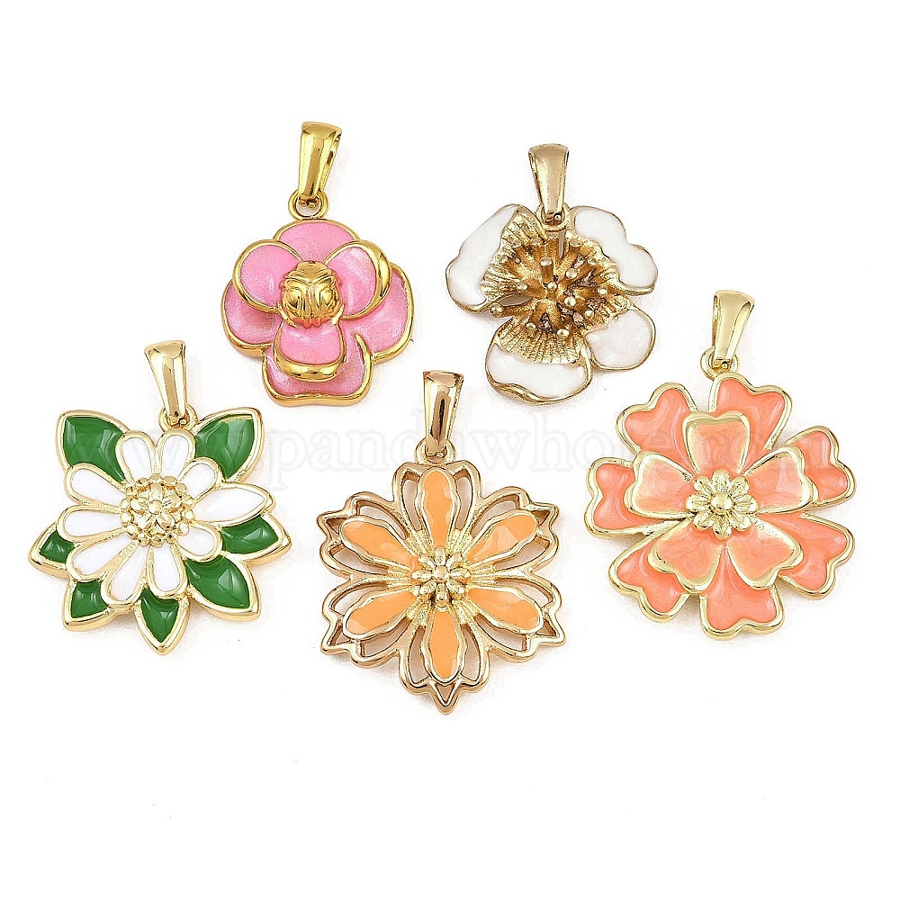 304 нержавеющей стальной эмали подвески, цветок, золотые