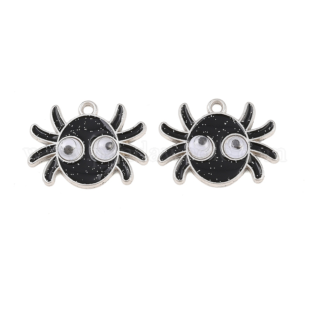 • Черный Подвески из сплава хэллоуина с эмалью, Подвески в виде паука с большими глазами, украшенные блестками., платина, чёрные, 17x22.5x4 мм, отверстие : 1.6 мм