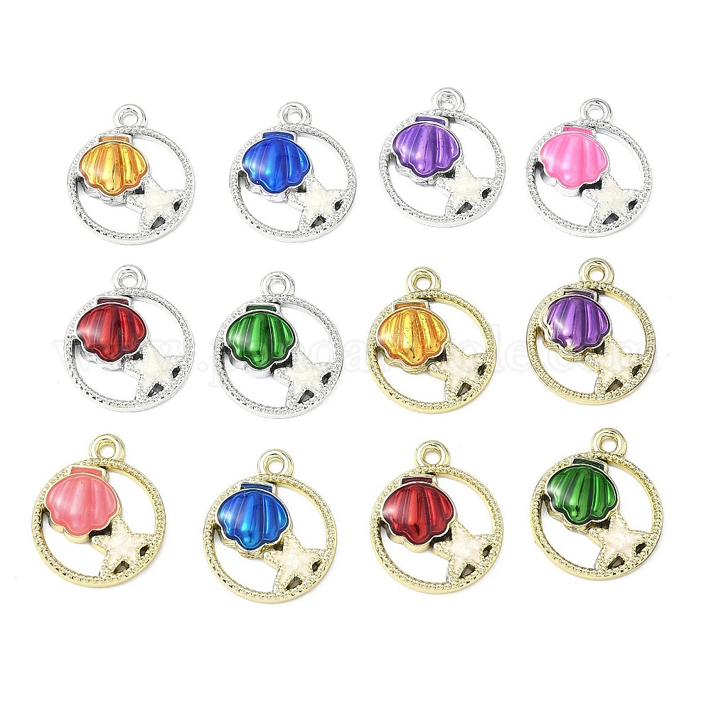 Подвески из морского сплава с эмалью, кольцо с подвесками в форме морской звезды и ракушки, разноцветные