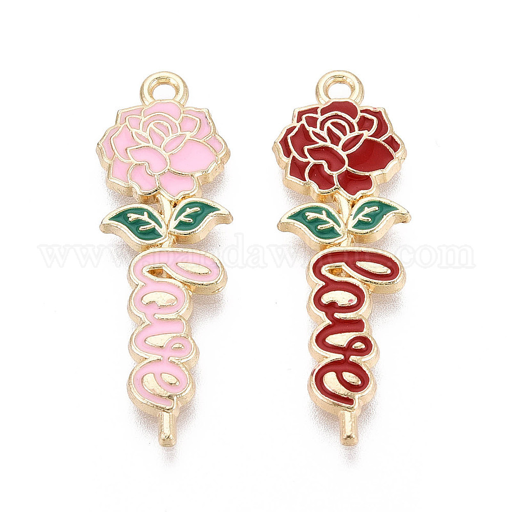 Подвески из эмали и сплава, Подвески в виде цветов и слов, символизирующие любовь., золотые, без кадмия, без никеля и без свинца