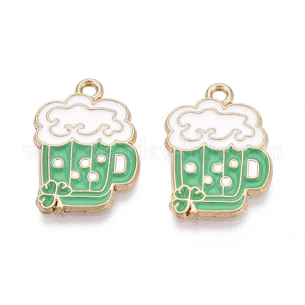 Подвески из сплава с эмалью ко Дню Святого Патрика, подвески на пивные бокалы, золотые, без кадмия, без никеля и без свинца