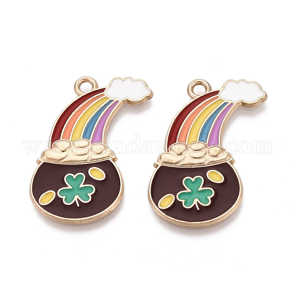 Подвески из сплава с эмалью ко Дню Святого Патрика, радуга с подвесками в виде баночек, золотые, без кадмия, без никеля и без свинца