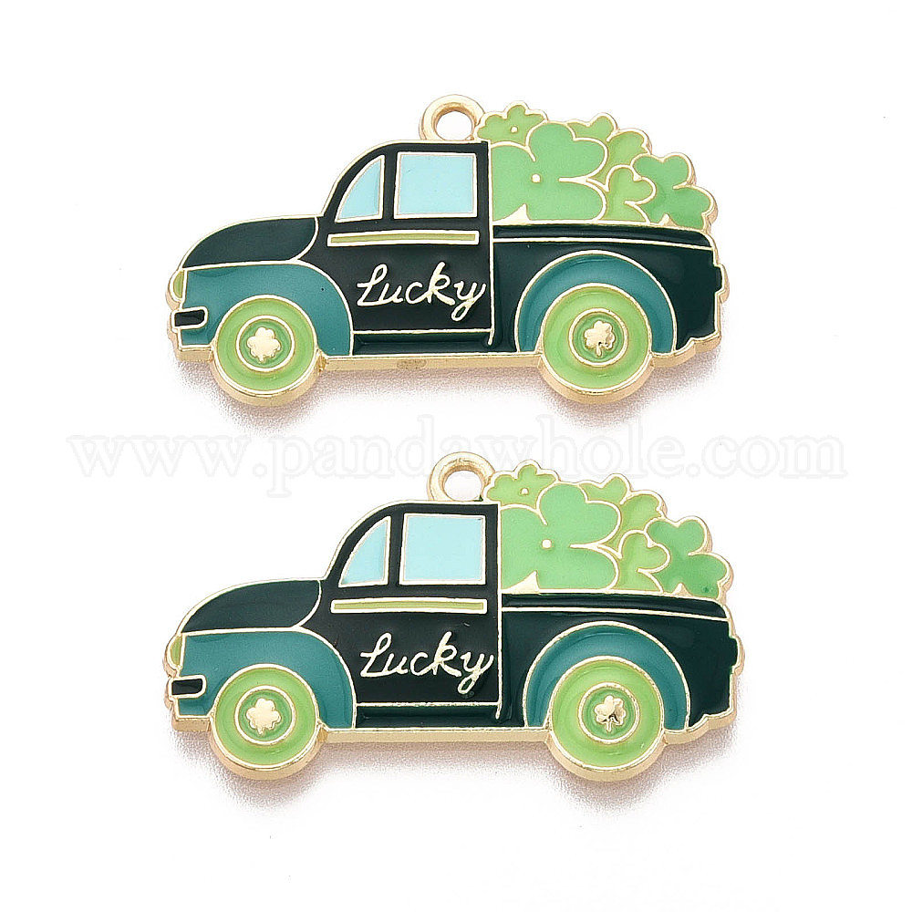 Подвески из сплава с эмалью ко Дню Святого Патрика, автомобиль с подвесками в виде клевера, золотые, без кадмия, без никеля и без свинца