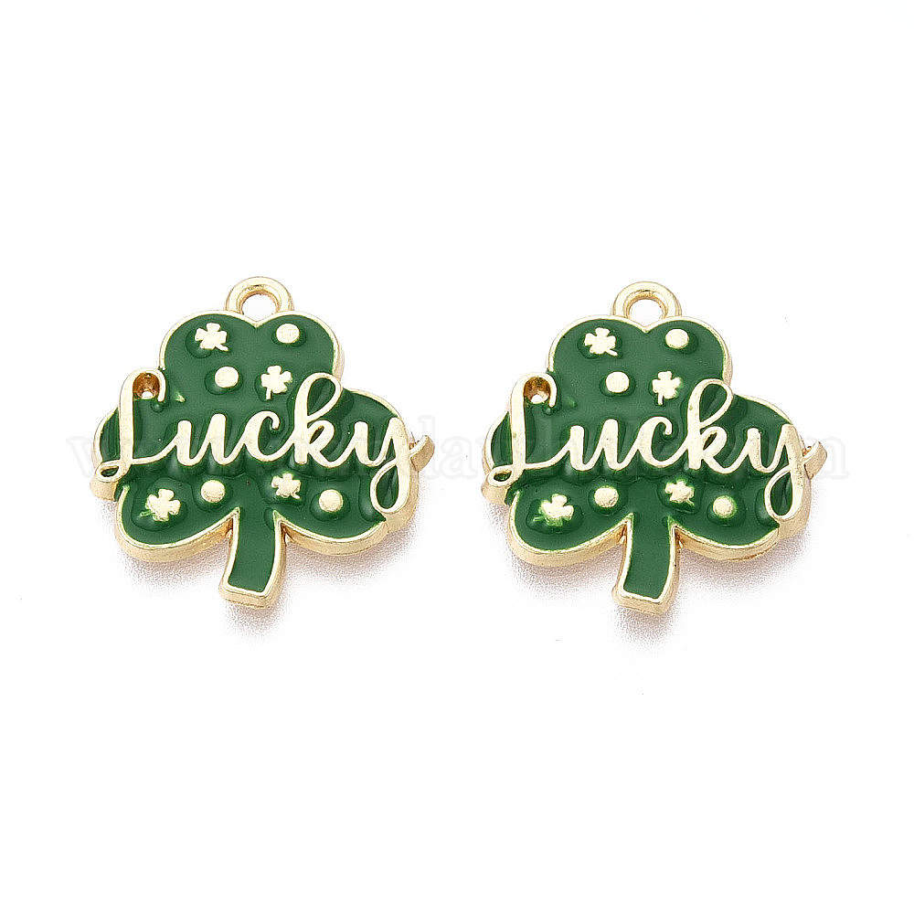 Подвески из сплава с эмалью ко Дню Святого Патрика, клевер со словами-талисманами, золотые, без кадмия, без никеля и без свинца
