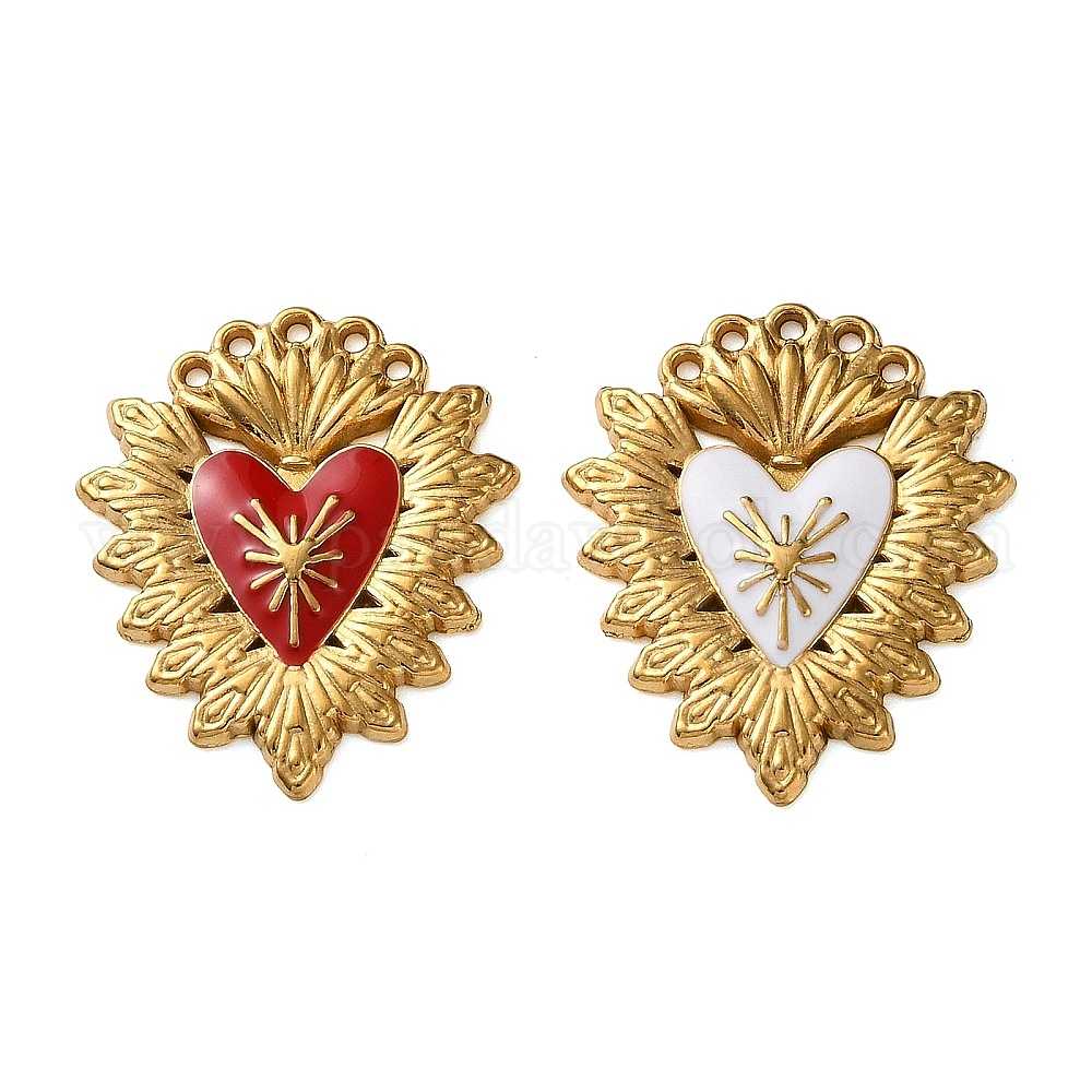 • Белый 304 нержавеющей стальной эмали подвески, чары священного сердца, золотые, белые, 26x21x2.5 мм, отверстие : 0.9 мм