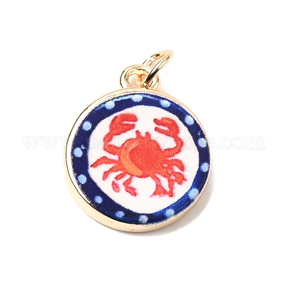 Латунь эмаль подвески, плоские круглые подвески с рисунком краба