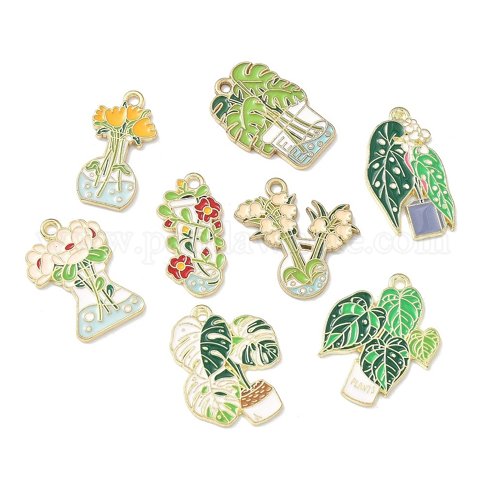 Подвески из сплава с эмалью, изображающей зеленые растения и растения в горшках., золотые