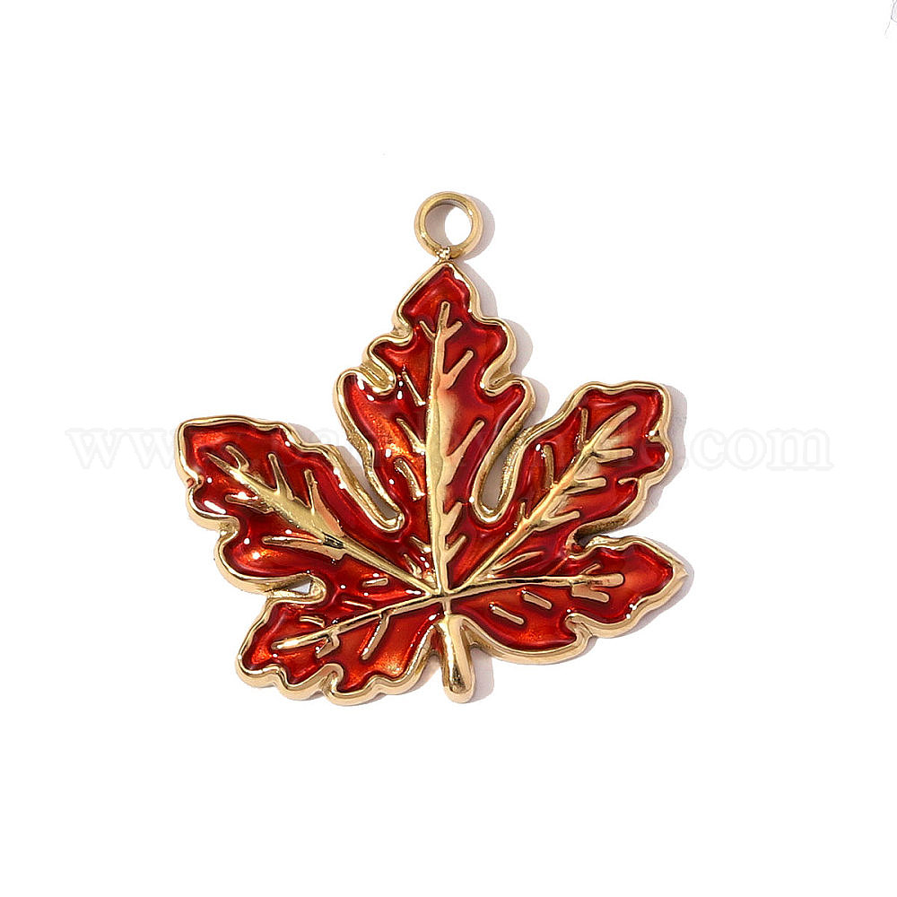 • Настоящее золото 18K 304 нержавеющей стальной эмали подвески, лист прелести, зеркальная полировка, ионное покрытие (ip), реальный 18 k позолоченный, 22x21 мм