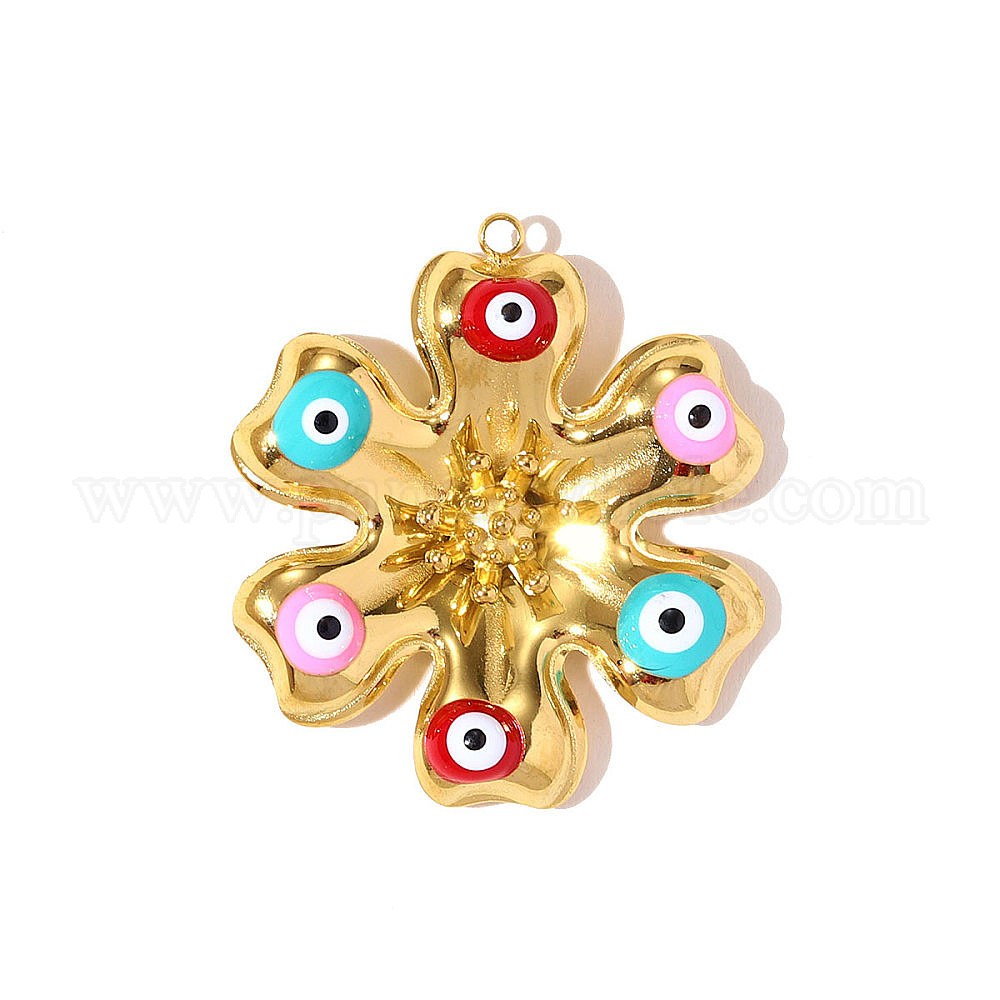 304 нержавеющей стальной эмали подвески, цветок с оберегами от сглаза, ионное покрытие (ip), зеркальная полировка