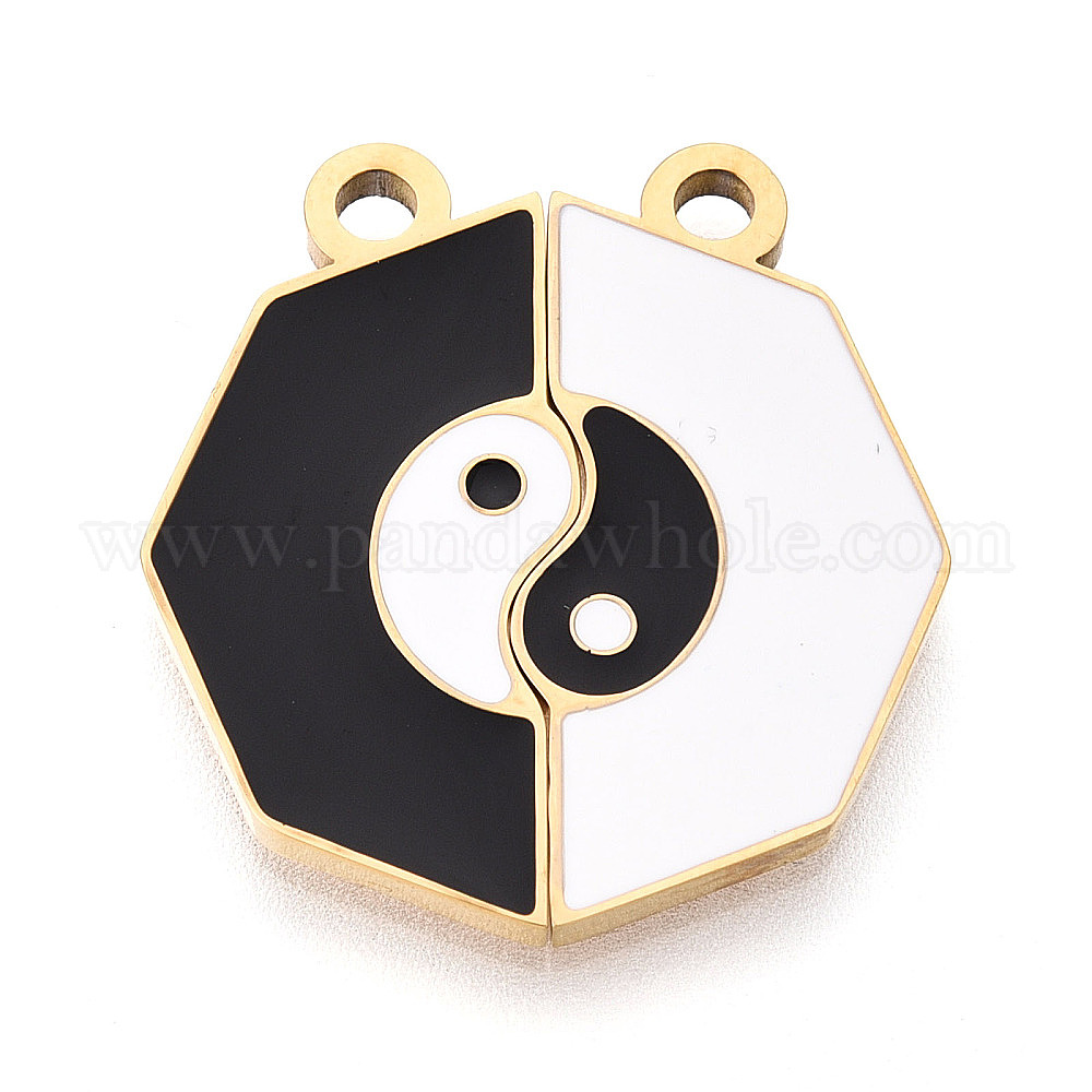304 из нержавеющей стали эмали сплит подвески, восьмиугольные и инь-янские подвески, ионное покрытие (ip), белый / черный
